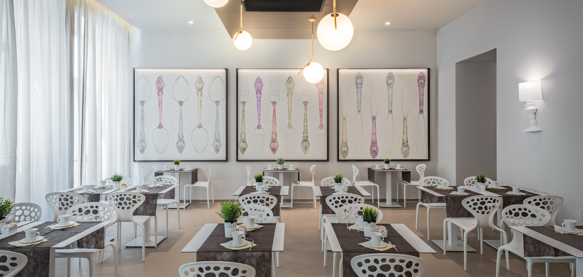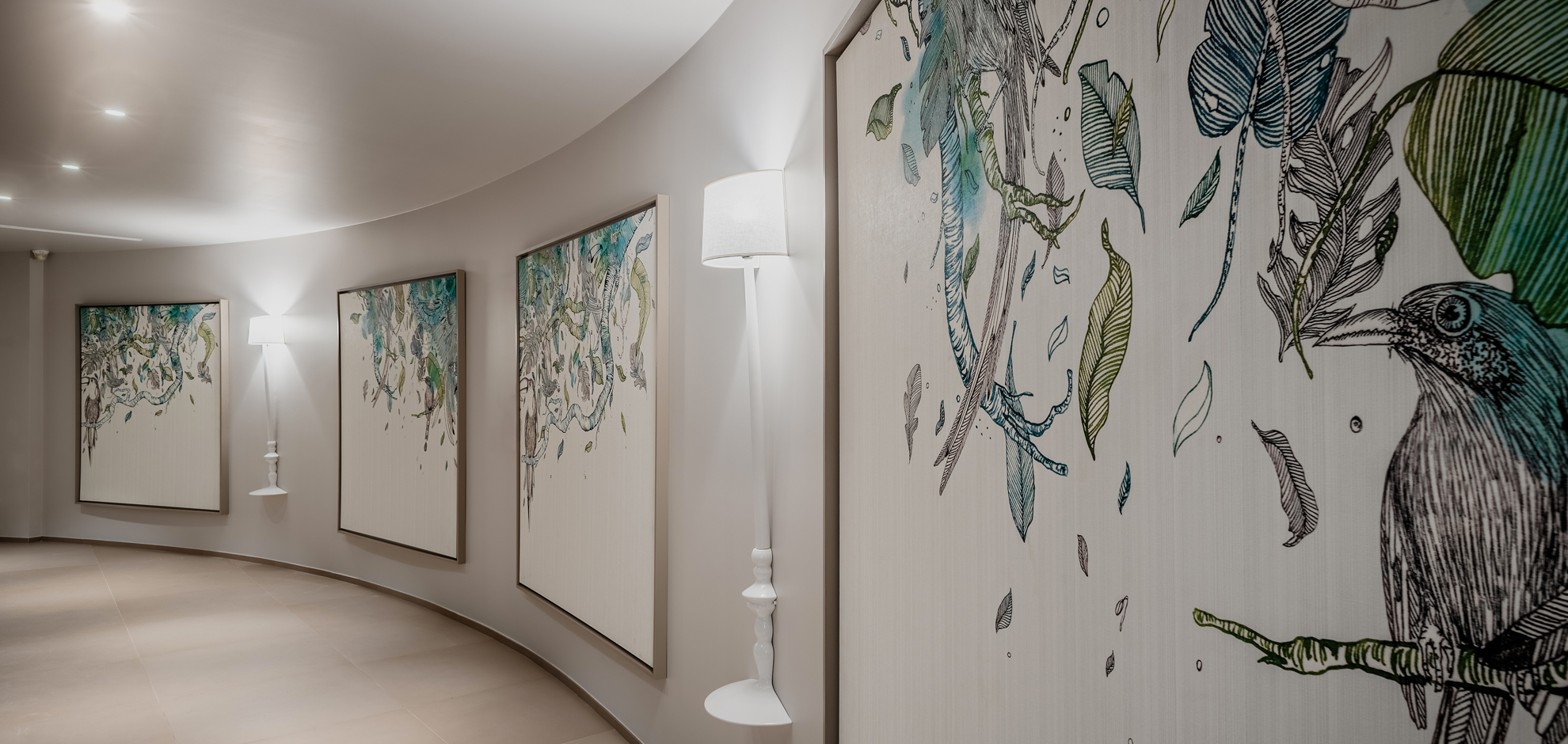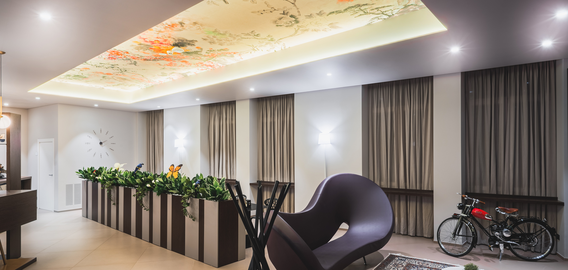 The request of the customer was to break the austerity of the location with a touch of colour and a natural inspiration.